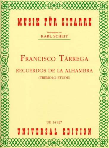 Recuerdos de la Alhambra (Tremolo-Et³de) for guitar Tárregas Werke sind zum Teil sehr virtuos angelegte Gitarrenkompositionen und daher auch oft im Konzertsaal zu h÷ren. Seine musikalische Erinnerung an den maurischen Palast bei Granada zõhlt wohl zu den sch÷nsten Tremolo-Et³den der romantischenGitarrenliteratur und geh÷rt unbedingt in das Repertoire eines jeden ambitionierten Gitarristen.